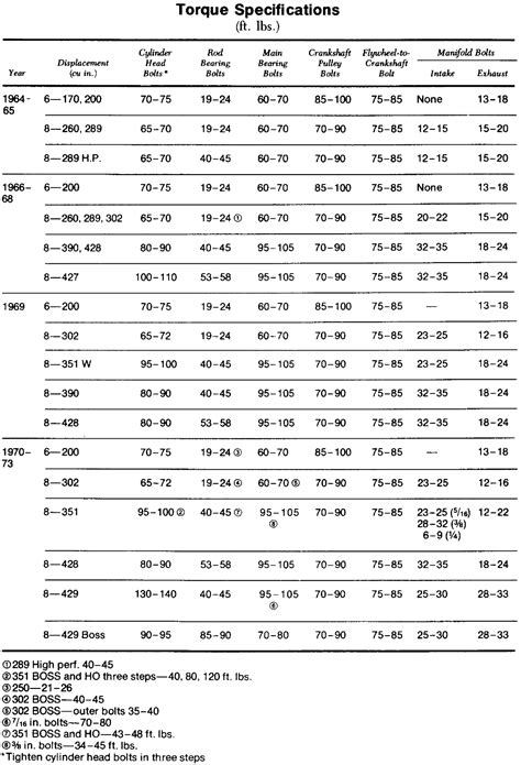 Knowing the correct torque specs for Ford 302 is crucial for its optimal performance and longevity. With this guide, you now have a clear understanding of the torque specs for the cylinder head bolts, main bearing bolts, and connecting rod bolts. Always follow the torque sequence and use a torque wrench to ensure accurate torque. With proper torque and maintenance, your Ford 302 engine will perform at its best and last for many years to come.